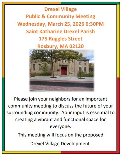 This Parish Town Hall meeting will be entirely devoted to a current update on Drexel Village. The developer, Bill Grogan, will join us to present current information and field questions you may have.